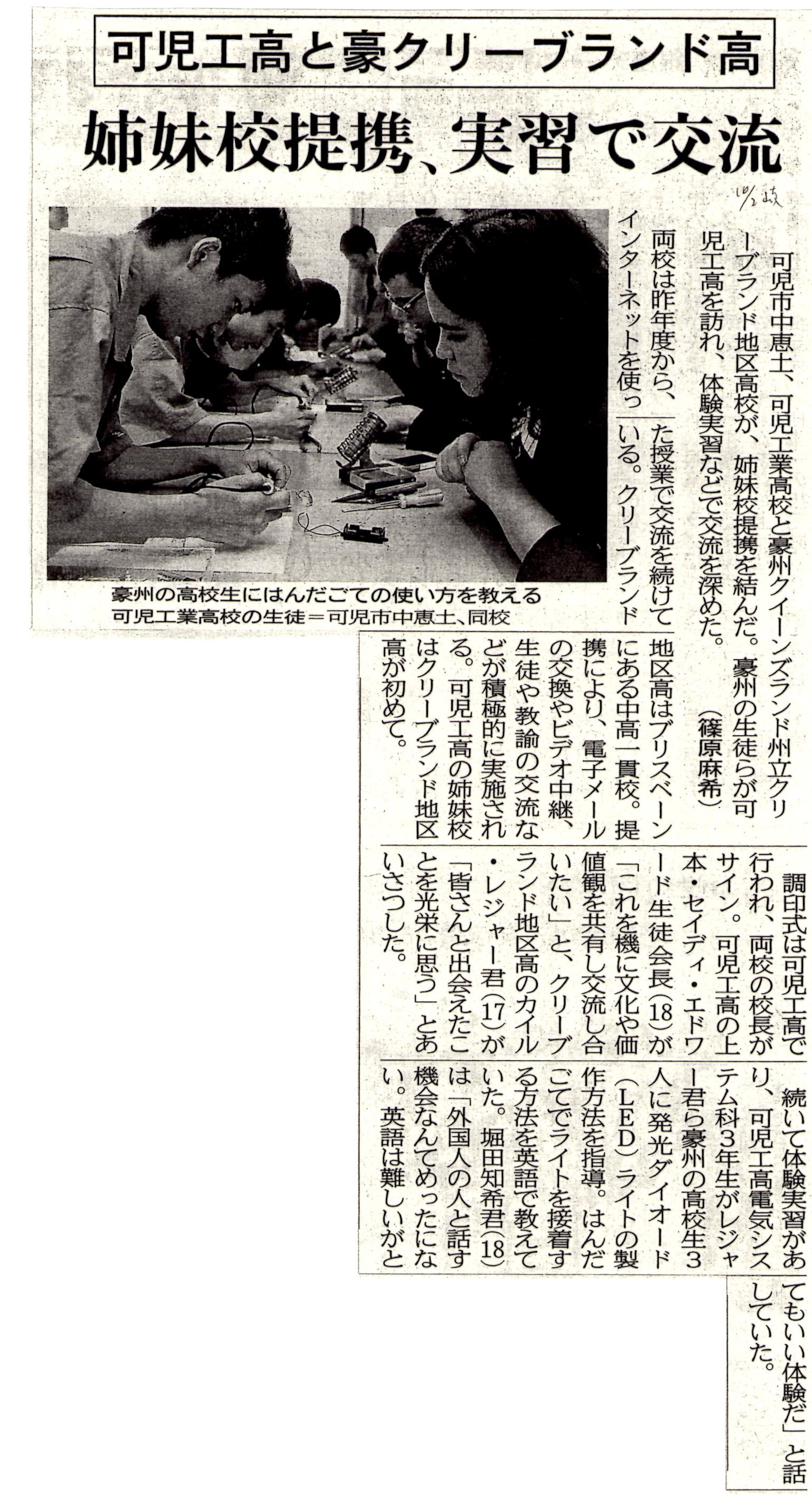 *AJWCEFの環境中継教育が発端となり、オーストラリアと日本の高校が姉妹校提携! 2013年9月30日、岐阜県立可児工業高校とオーストラリア’クイーンズランド州 クリーブランド地区高校が姉妹校提携を結びました!*